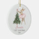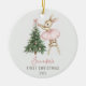 Ornamento De Cerâmica Primeiro Natal do Bebê Coelhinha Rosa Bonito