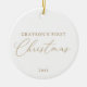 Celebre o primeiro Natal do seu bebê com este ornamento simples e elegante, com um roteiro dourado e um lugar para carregar sua foto no verso.