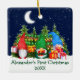 Ornamento De Cerâmica Primeiro Natal do Bebê Luzes Aquarela Gnomos Céu