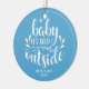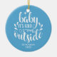 Enfeite de cerâmica para foto do primeiro Natal do bebê menino moderno. Com uma fonte de letra elegante, está frio lá fora em um fundo azul bebê com o nome do bebê e o ano de seu nascimento especial. Personalize com os detalhes do seu pequeno(a). Adicione a foto do seu bebê no verso, tornando-o um presente de lembrança lindo como um presente de batizado, ou como um presente especial para os avós orgulhosos.