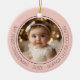 Ornamento De Cerâmica Primeiro Natal do Bebê Rosa Moderno 2 Fotos Recém-