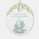 O primeiro ornamento de Natal deste bebê bonitinho apresenta folhas verdes modernas com ilustração elefante azul e cinza.