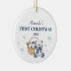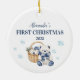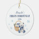 Ornamento De Cerâmica Primeiro Natal do Urso Azul Personalizado