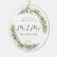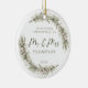 Ornamento De Cerâmica Primeiro Natal em Newlyweds Sage Greenery