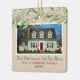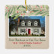 Este belo ornamento de manutenção de férias apresenta uma foto da sua nova casa com o texto personalizado do roteiro "Primeiro Natal em Nossa Nova Casa", o nome da sua família e o ano em que a casa foi comprada. A design apresenta a moderna aquarela, galhos verdes de inverno com folhas verdes e bagas vermelhas. A cor de fundo bege neutro pode ser modificada. O mesmo design aparece em ambos os lados do ornamento personalizado.