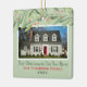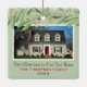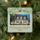 Este belo ornamento de manutenção de férias apresenta uma foto da sua nova casa com o texto personalizado do roteiro "Primeiro Natal em Nossa Nova Casa", o nome da sua família e o ano em que a casa foi comprada. A design apresenta a moderna aquarela, galhos verdes de inverno com folhas verdes e bagas vermelhas. A cor verde-clara do fundo pode ser modificada. O mesmo design aparece em ambos os lados do ornamento personalizado.