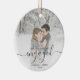 Comemore o seu noivado com este belo ornamento moderno do keepsasaame. O texto da cinza de carvão diz "Nosso primeiro Natal engajado", com a palavra "engajado" em uma escrita elegante com florescimento antes e depois. Substitua a imagem de exemplo por sua foto favorita e adicione seus nomes e o ano. Um filtro de gradiente branco ajuda a fazer o pop de texto.
