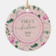 Ornamento De Cerâmica Primeiro Natal, Floral Rosa-Rosa-Cons