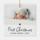 Primeiro Natal do Bebê adorno de natal. Projeto com sua foto favorita, destaque decorativo em coração vermelho e letras caprichosas.