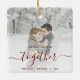 Comemore o seu primeiro Natal como um casal, noivo ou casado, com este belo ornamento moderno de guardas. O texto vermelho-escuro diz "Nosso primeiro Natal juntos", com a palavra "juntos" em uma escrita elegante com florescimento antes e depois. Substitua a imagem de exemplo por sua foto favorita e adicione seus nomes e o ano. Um filtro de gradiente branco ajuda a fazer o pop de texto.
