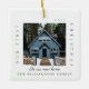 Uma fotografia simples e moderna mantém uma nova decoração de fotografias caseiras para comemorar o seu primeiro Natal na nossa nova casa. O design apresenta um simples design mínimo com um design de fotografia quadrada para mostrar a sua nova fotografia de casa especial. "Nosso primeiro Natal", ano e nome de família é mostrado em uma simples design moderna ao redor da foto. Dois ornamentos fotográficos com uma foto de um lado e uma segunda foto do outro lado do ornamento.