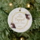 Ornamento De Cerâmica Primeiro Natal Noivado Dourado Peônias de Mármore