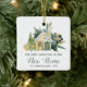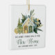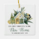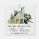 Celebre o seu primeiro Natal em sua nova casa com este adorável ornamento de keepsasawn, com uma pintura aquarela de uma acolhida amarela e verde cercada por folhagem e bagas de inverno. O texto diz "Nosso Primeiro Natal em Nossa Nova Casa", com a palavra "Nova Casa" em caligrafia verde e o texto remanescente em cinzas de carvão. Personalize-o com o nome da sua família e o ano.