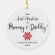 Primeiro Natal personalizado como Mamãe e ornamento cerâmico de Pai. Personalize com suas informações personalizadas tanto na frente quanto na parte traseira.