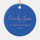 Ornamento De Cerâmica Primeiro Natal Personalizado Nome Fotográfico Azul