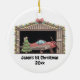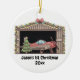 Design apresenta um dentro de avião vermelho bonito ao lado de uma árvore de Natal bonito acesa. Na parte inferior da imagem está o texto '[Name] 1rua Natal' e ano. Personalize este ornamento com seus detalhes específicos. Isso seria perfeito para aquele pequeno aviador! Copyright Soar em Style Design LLC.