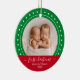 Celebre o primeiro Natal do seu bebê com este ornamento verde e vermelho. Personalize com uma foto, nome e ano.
