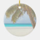 Guardar Noivado Ornament com palmeira tropical ao lado de uma costa azul-oceânica de turquesa e a orla costeira é perfeito para o casal que se engajou numa praia ou planeja um casamento de destino.