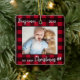 Ornamento De Cerâmica Primeiro Natal Red Buffalo Xadrez Cute Foto do Beb