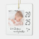O moderno "primeiro Natal como irmão mais velho" ornamento cerâmico com um simples design com o ano e uma foto personalizada. Duplo lado.