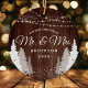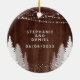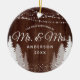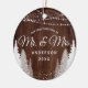 Primeiro Natal Sr & Sra Madeira Luzes de Natal em Cordão Ornamento de Cerâmica. Este design apresenta belas luzes de cordão, árvores de pinheiro rústicas de inverno e neve!