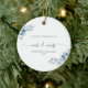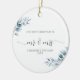 Os ramos elegantes da folhagem de inverno em azul de gelo e pintados em aquarela fazem uma delicada decoração para este delicado e na moda para um novo casal com o título "Nosso primeiro Natal como Sr. e Sra.". Moderno, simples e elegante.