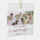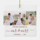 Comemore o seu primeiro Natal como recém-casados com este belo ornamento moderno do keepsasasaame. O texto vermelho burgundy lê "Our first Christmas as" (Nosso primeiro Natal como), com as palavras "mr & mrs" em um roteiro elegante de escrita manual, com florescimento antes e depois. Substitua as três imagens de exemplo por suas fotos verticais favoritas e adicione seus sobrenomes e o ano.