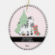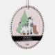zebra bebê adorável com listras vermelhas/verdes, estocagem de Natal e árvore verde em fundo. Rosa claro para uma menina. Faixa preta e borda estriada ao redor do ornamento. Modelo criou para você. Perfeito para pais novos celebrando o primeiro filho no Natal!