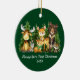 O Primeiro Ornamento de Animais Florestais de Floresta de Cerrado de Natal do bebê. Os animais incluem Urso, Veado, Veado-Bebê com Arco Verde, Moose, Raccoon, Coelho Coelho com vegetação florestal. Adicionar Nome. Fundo Verde Florestal.
