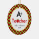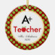 Este Enfeites de natal é um presente de excelente para aquele professor especial. O texto diz: A+ Professora... acentuado com uma maçã vermelha. O texto personalizável próximo à parte inferior permite adicionar o nome e o ano do professor.