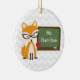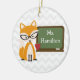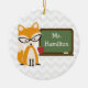 Um ornamento para os professores que caracterizam uma ilustração de uma raposa que veste o cristal de rocha encheu os vidros retros do olho de gato que estão em um quadro com maçã. Personalize com seu nome no quadro.