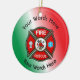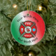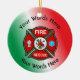 Este Enfeites de natal personalizado é decorado de um lado com a blindagem de resgate de incêndio. O verso é decorado com uma imagem de Papai Noel carregando seu saco de doces, e pode ser personalizado com nomes, datas etc.