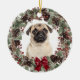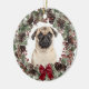 Ornamento De Cerâmica Pug Dog Red Arco Pinecone Wreath Personalizado