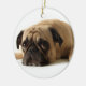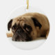 Fechamento de um Pug com uma expressão culpada no rosto. Isolado sobre fundo branco.