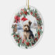Um Enfeites de natal bonito com um doce cachorrinho de yorkshire terrier yorkie num chapéu de Papai Noel no Natal Holly e na coroa de fruta. Cachorro personalizado, filhote, Enfeites de natal animal fofo (texto no verso).
