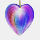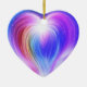 A beautiful multi-colored heart is on the front and back of a heart-shaped ceramic Valentine tree ornament.