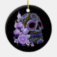 Ornamento De Cerâmica Purple Floral Black Sugar Skull Dia Dos Mortos