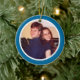 Ornamento De Cerâmica Quadro azul e branco da foto - frente e verso
