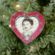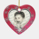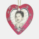 Foto dupla, ornamento em forma de coração em azul com flocos de neve bonito, com floco de neve de data móvel.