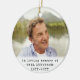 Honre um amado que partiu para as férias com um Enfeites de natal de cerâmica preto e branco. Todos os textos e imagens neste modelo são simples de personalizar e podem ser diferentes ou iguais em frente e atrás. "Na memória amorosa de" pode ser mudado para "para sempre em nossos corações", "um anjo no céu" ou outra formulação. (DICA DE IMAGEM: Uma maneira fácil de centralizar uma foto exatamente como você deseja é recortá-la antes de carregá-la no site do Zazzle.) O moderno design minimalista apresenta uma tipografia simples, em estilo preto e branco, com duas imagens da sua escolha. Esta simpatia única e moderna faz uma ideia de presente de lembrança funerária refletida e adiciona um toque na moda às decorações de casa do Natal. É uma maneira elegante de prestar tributo a um membro da família ou amigo que morreu.