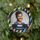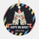 Torne a temporada de férias do escritório divertida e memorável com este ornamento de cerâmica redonda personalizável! Um lado apresenta uma foto do chefe (você pode carregar o seu próprio) e um nome que pode mudar, enquanto o outro lado apresenta um design encantador de uma coruja fofa com óculos e uma gravata, embrulhada em luzes coloridas de cordas, acompanhadas pelo texto lúdico "Hoo's the Boss?" e o nome da companhia personalizável. Perfeito como presente festivo ou decoração de escritório, este ornamento adiciona humor e charme a qualquer celebração de feriado no local de trabalho.