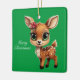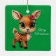 Celebrar a época de férias com este ornamento cerâmico festivo verde que apresenta um cartoon cartoon de floresta cartoon gráfico de um veado bebê bonitinho com flores de poinsettia escondidas na orelha da madre, e Feliz Natal escrito em branco. Perfeito por decorar sua árvore ou como um presente pensativo, este delito floral caprichoso faz um bem-estar apreciado por anos. Veja a coleção de veados do ForestBabies Xmas para confundir decorações. 🎄 🦌