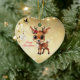 Celebrar a época de férias com este único adorador de renas festivas de ouro que amava o adorno de cerâmica cardíaca apresentando um cartoon cartoon de floresta cartoon de um veado bebê fofo com flores de poinsettia escondido no ouvido da camisola, e Feliz Natal escrito em vermelho. Uma rena perfeita com galhadas por decorar a sua árvore ou como um presente pensativo, esta decoração floral brilhante faz um bem-estar apreciado por anos. Personalizar alterando o texto, a fonte, a cor da fonte ou removendo o texto. Você pode até transferir este design para outros produtos. Aproveite esta design! Veja a coleção de veados do ForestBabies Xmas para confundir decorações. 🦌 🎄 ♡
