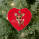 Celebrar o feriado com este ornamento cerâmico festivo de renas vermelhas, com um cartoon cartoon cartoon de floresta cartoon de um veado bebê bonitinho com flores de poinsettia, escondido no ouvido da camisa, e Feliz Natal escrito em branco. Uma rena perfeita com galhadas por decorar a sua árvore ou como um presente pensativo, esta decoração floral brilhante faz um bem-estar apreciado por anos. Personalizar alterando o texto, a fonte, a cor da fonte ou removendo o texto. Você pode até transferir este design para outros produtos. Aproveite esta design! Veja a coleção de veados do ForestBabies Xmas para confundir decorações. 🦌 🎄 ❤️