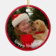 O que poderia ser mais excitante do que um novo filhote no Natal! Doce menina em Santa que segura seu novo filhote. O pãozinho veste um colar vermelho. O lote da árvore de Natal está no fundo. Um presente ou decoração divertidos para sua árvore. Enfeites de natal incríveis para sua casa ou para presentes. Mude o texto facilmente para o seu. Também mude a foto para uma de suas, se quiser.
