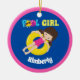Um presente de Enfeites de natal da natação. Apresenta uma brilhante e divertida pop de cores e uma adorável garota morena de natação em um tubo interno. Personalize com o nome do seu filho. Bonito presente para um professor de natação.