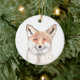 Raposa, animal da floresta. Uma pintura de aquarela original da artista Monika Howarth. bicho cômico e fofo. Decoração de Natal.