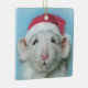 Meu retrato de estimação, originalmente criado em pastéis macios, retratando um adorável rato branco com orelhas e bigodes proeminentes vestindo um Papai Noel vermelho e branco que embeleja de ambos os lados desse ornamento cerâmico.