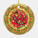 Ornamento De Cerâmica Red Abstrato Phoenix Bird Dourado e Sparkles