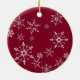 Ornamento De Cerâmica Red and White Snowflake Background Christmas